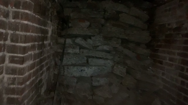 It’s dark, silent and empty save for a few historical pictures and old newspaper clippings hanging upon the stone walls.