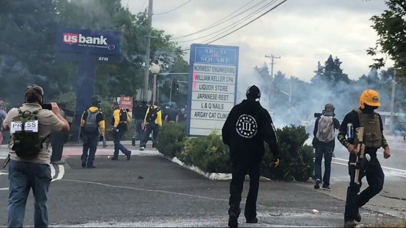 “There’s been an escalating amount of gun violence associated with white nationalist, anti-democratic events this summer,” said Amy Herzfeld-Copple, a director at the Western States Center.