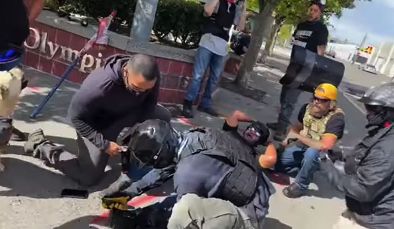 On Sept. 4, right-wing Proud Boy leader Tusitala “Tiny” Toese was shot in the ankle during a protest in Olympia, Washington, with the bullet nicking an artery and fracturing a bone before passing through his flesh, according to a conservative livestreamer.