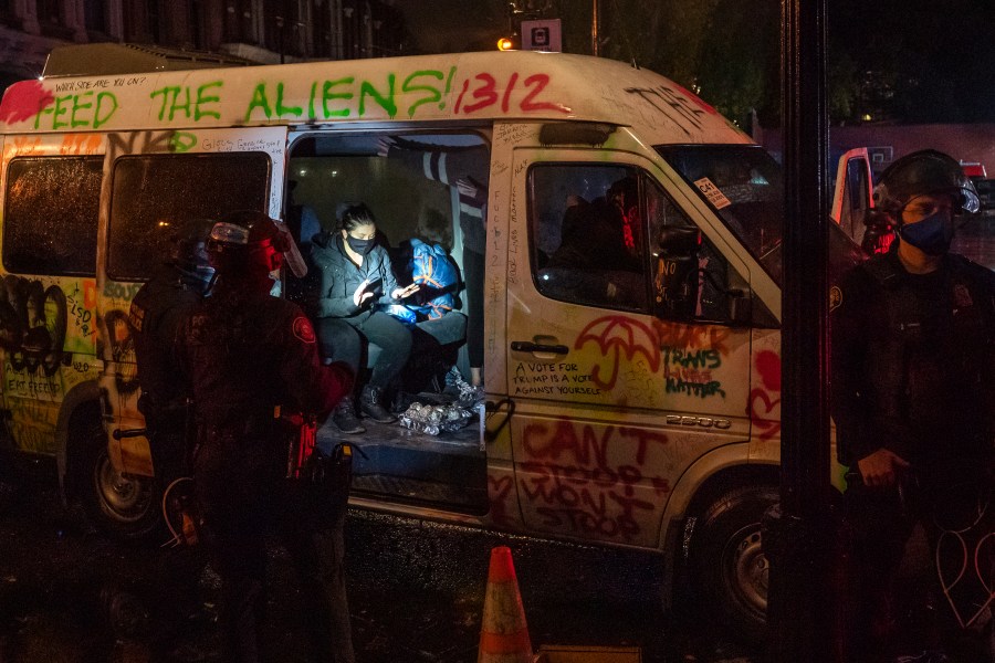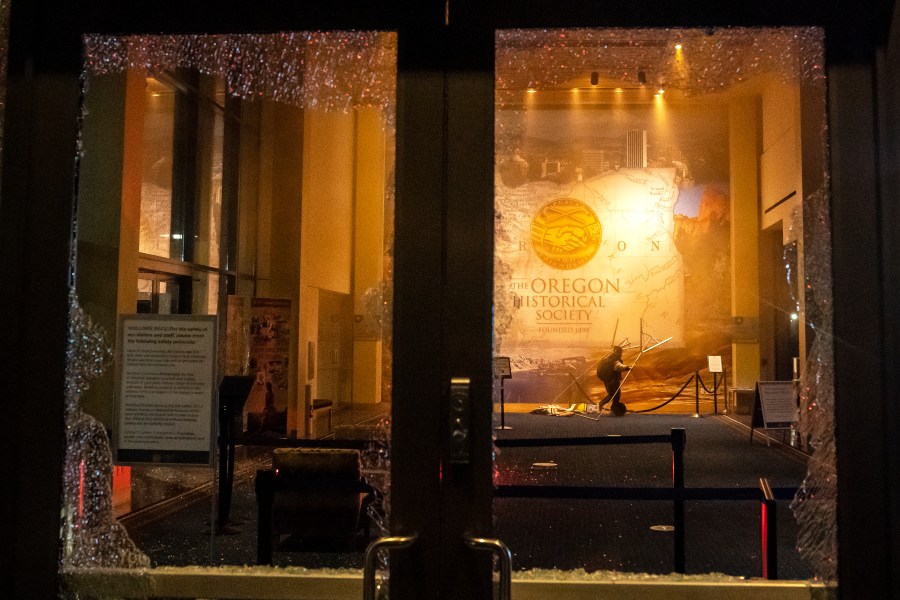 Lovell also described the damage done to the Oregon Historical Society, Portland State University’s Public Safety building — as well as a gunfire aimed at nearby restaurant that left multiple bullet holes. Several windows were broken at another restaurant, a coffee shop and a bank as well, according to Lovell.