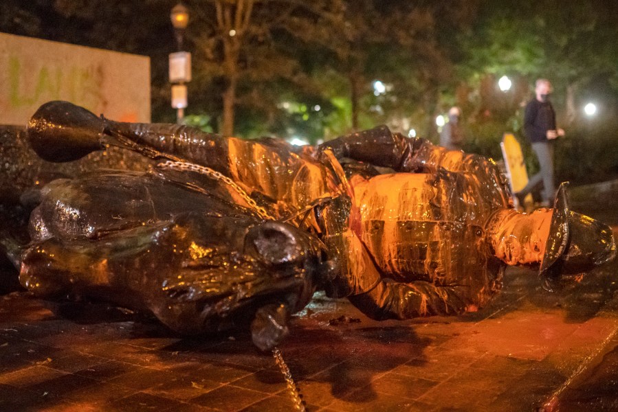 Portland Police Chief Chuck Lovell also spoke at Monday’s presser. He detailed some of the criminal activity that took place Sunday night, which included the removal of multiple statues.
