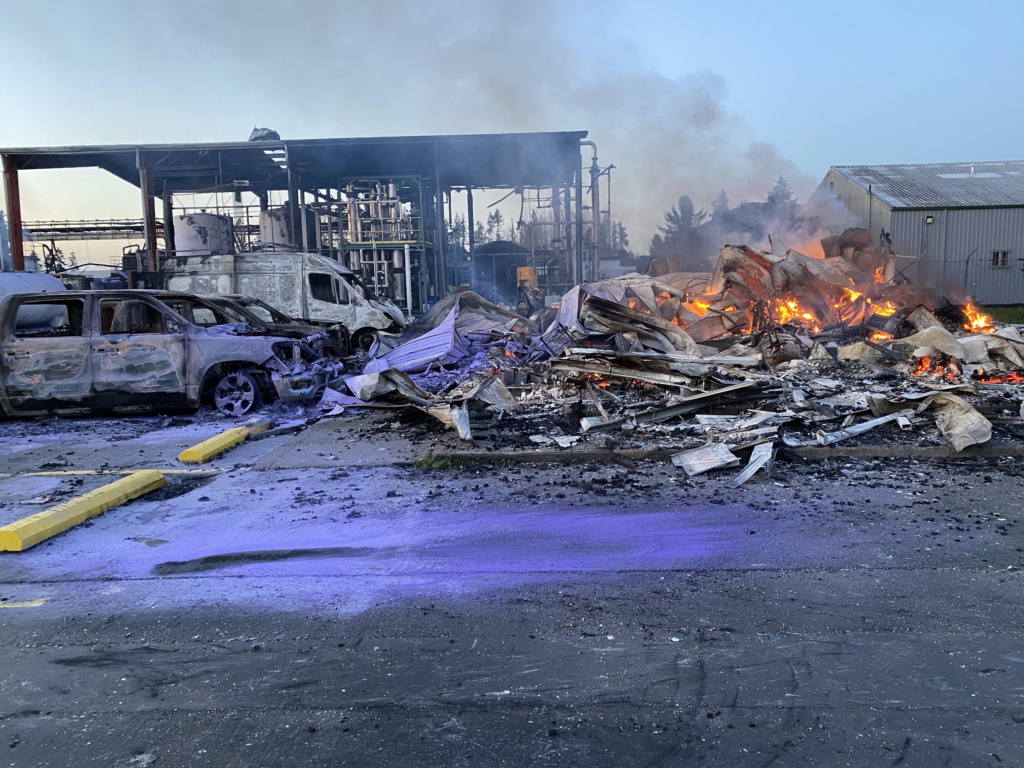 PORTLAND, Ore. (KOIN) — A large ethanol fire destroyed multiple buildings and vehicles Tuesday afternoon in Cornelius, firefighters said.