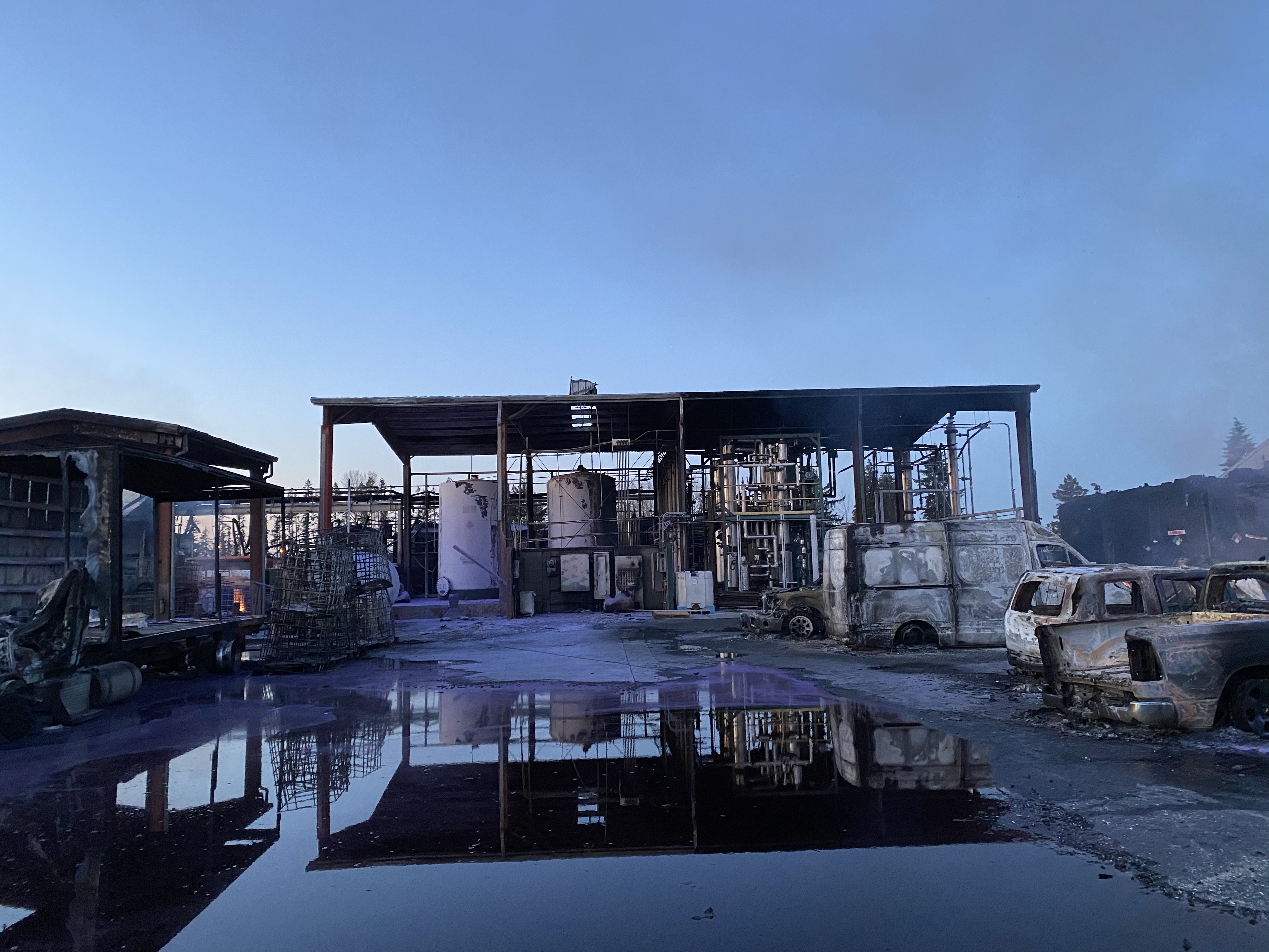 Firefighters said the fire was reported at 1:30 p.m. in the 500 block of N 4th Avenue where Thunderbolt Racing Fuel and Summit Foods are located. Crews arrived within minutes and found heavy smoke and flames coming from an area where ethanol racing fuel is processed and stored. Backup was called and firefighters started to work on extinguishing the flames but multiple explosions and “erratic fire conditions” led authorities to pull their teams back to a safe distance, Forest Grove Fire & Rescue said.