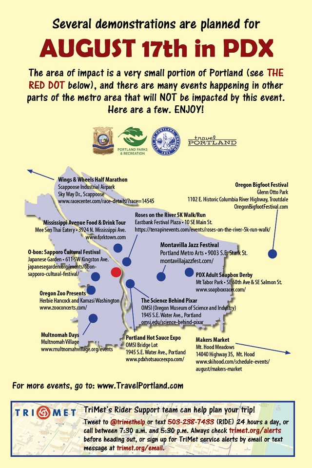 “Portland Police Bureau members continue to plan for the up-coming demonstrations and we want to provide our business owners, community members, and visitors with the most current information we have available,” Outlaw said.
