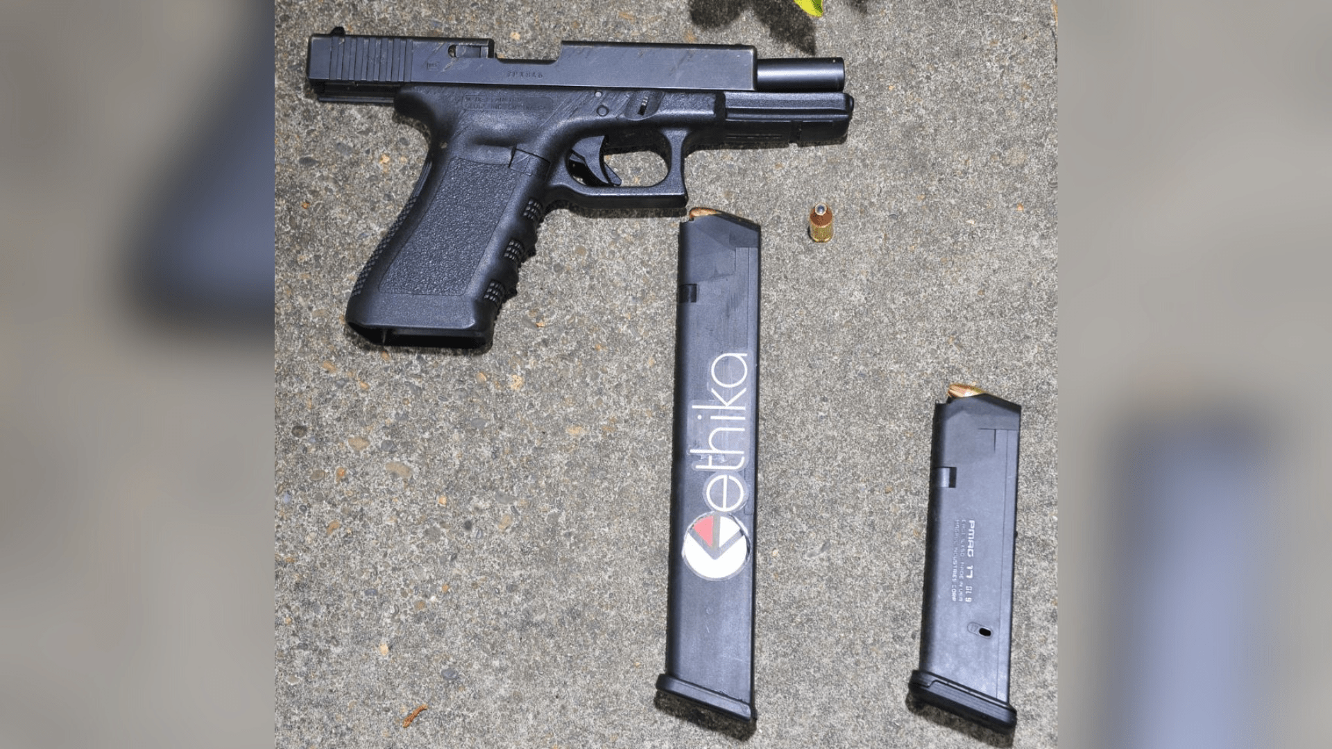 PPB said a loaded gun with an extended magazine was found in the back of a nearby business.