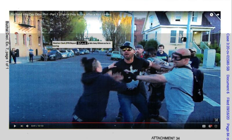 Lee’s previous gambit to halt the prosecution of Gibson was rejected by Oregon District Federal Judge Karin Immergut on Feb. 26, as earlier reported by the Courthouse News Service. Immergut’s 25-page ruling noted that Gibson can be seen on video encouraging “mutual combat” between the dueling groups.