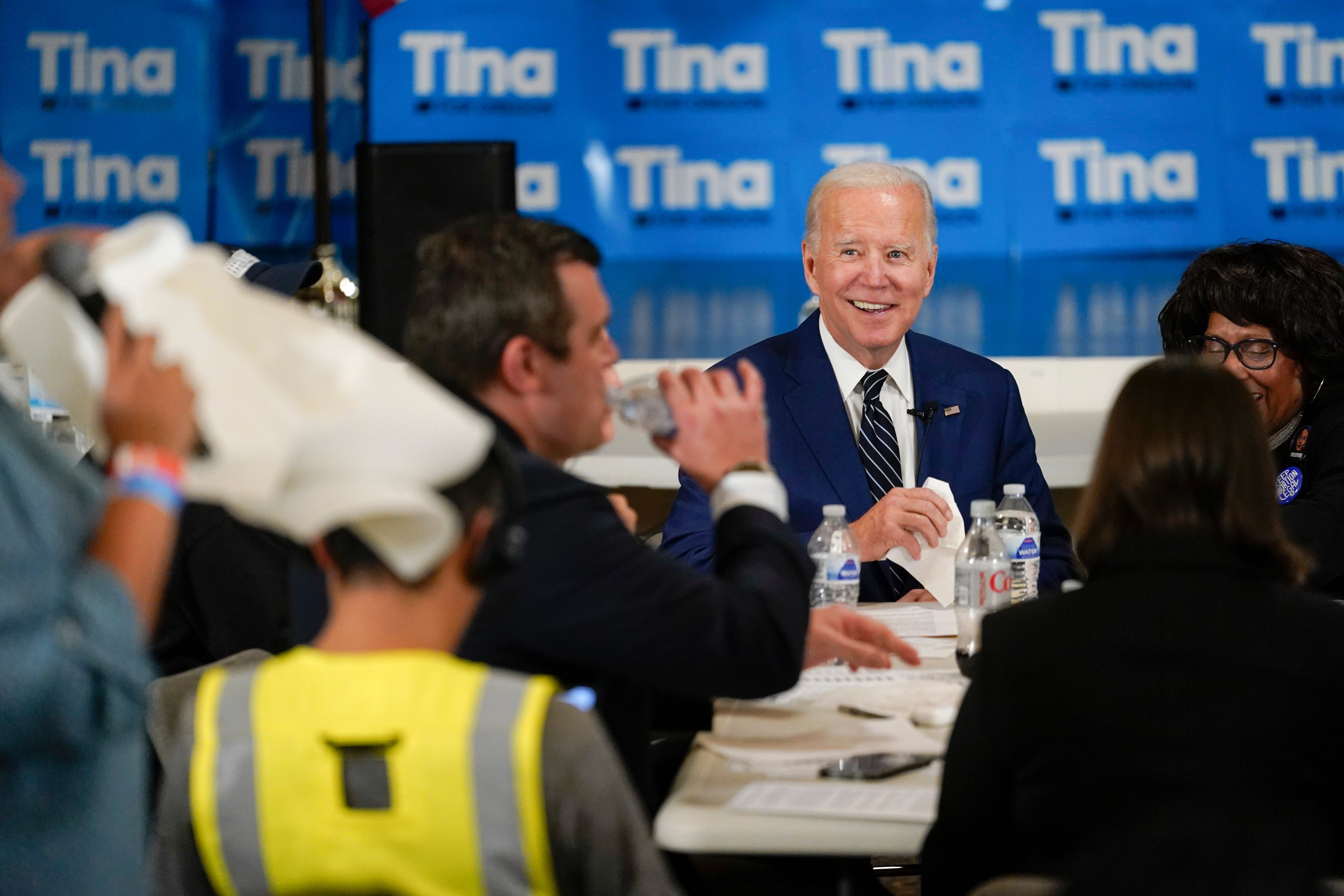 After arriving in Portland, Biden’s next stop was at a grassroots volunteer event with the Oregon Democrats at the SEIU Local 49 in Portland as he promoted Tina Kotek, the Democratic nominee for governor facing a tight race.