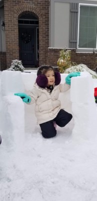 4-year-old Avaline build an igloo with her family in Hillsboro
