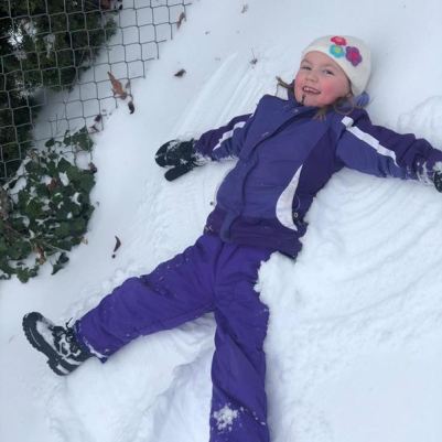 Adeline makes a snow angel in Parkrose Heights (Credit: Jennell Marks)