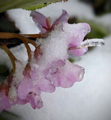 A very snowy and icy flower in Southwest Portland. (Credit: Sue Strater)