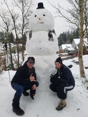 A giant snowman in Hazel Dell, Washington (Credit: The Brashear Family)