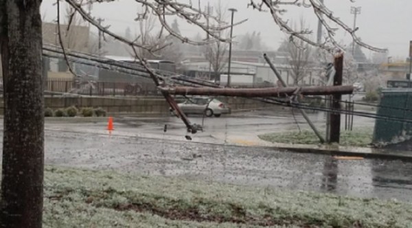 Poles fell during an ice and freezing rain storm in Silverton, February 12, 2021 (Courtesy: Dave via Twitter)