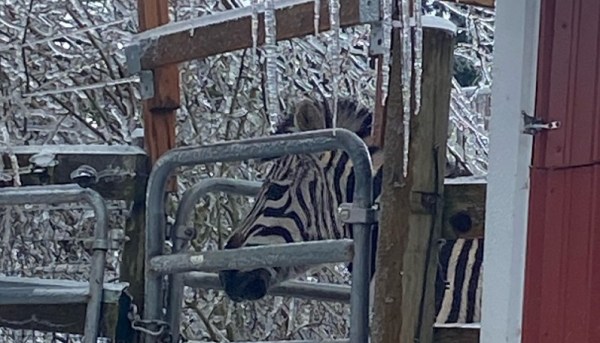 A zebra during a snow and ice storm in Portland metro, February 13, 2021 (Courtesy: Cindy DiBrino)