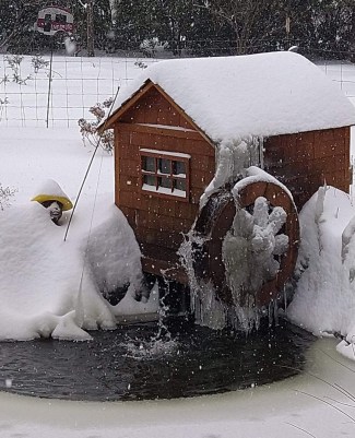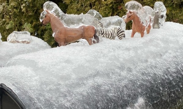 Frozen animal figurines on a mailbox during a snow and ice storm in Portland metro, February 13, 2021 (Courtesy: Cindy DiBrino)