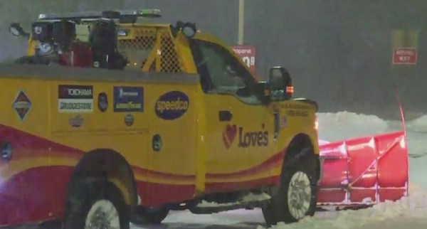 A snow plow in Troutdale during blizzard conditions, February 12, 2021 (KOIN)