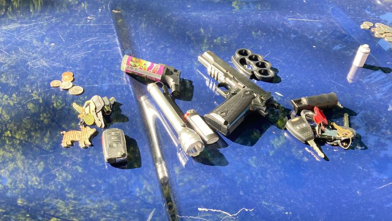Item’s taken from the suspect include a gun and brass knuckles, according to police.