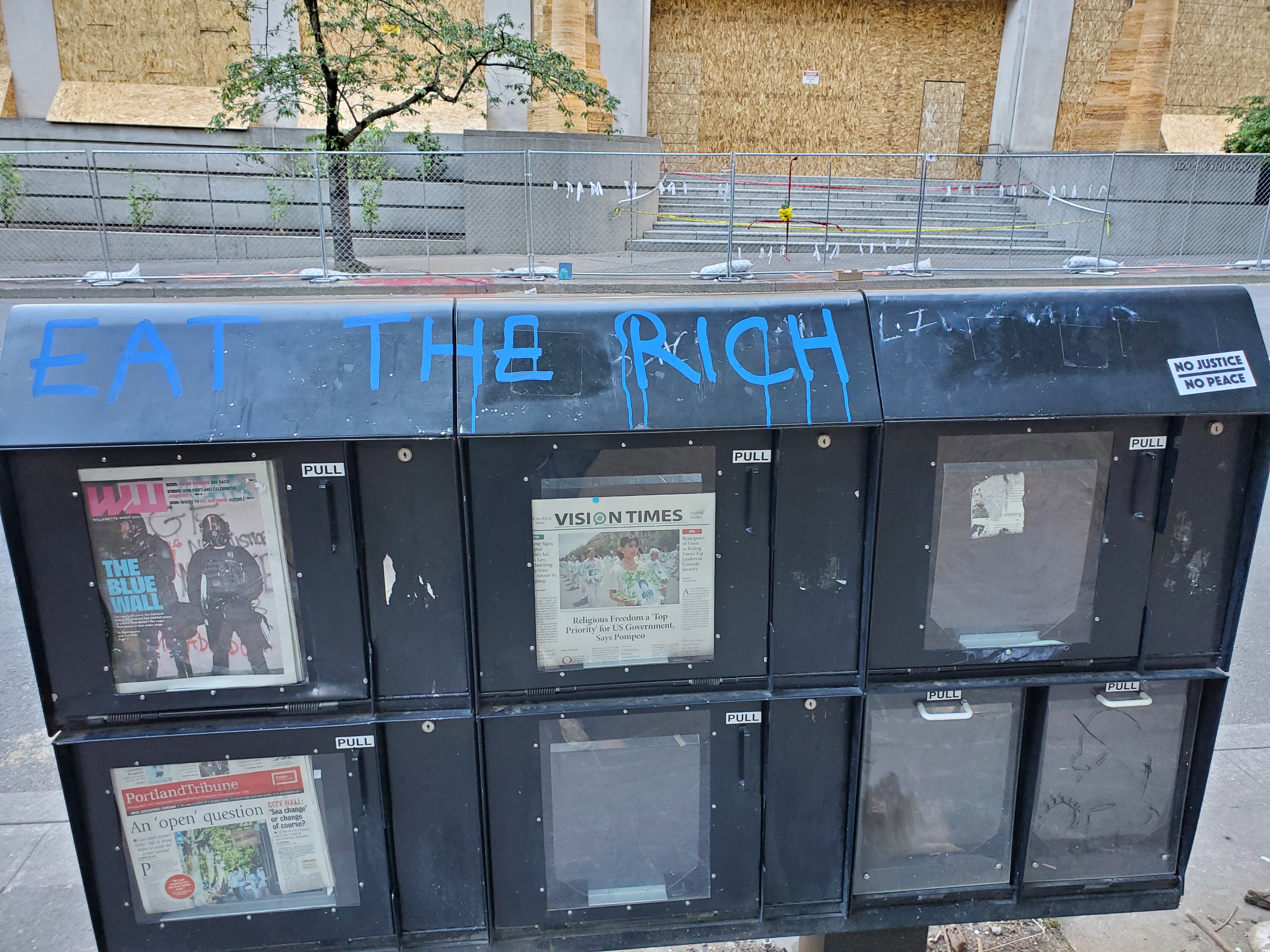 While RCJ avoids characterizing the factions as peaceful versus violent, its protests usually go undisturbed by police and don’t result in property damage like what Portlanders have become accustomed to downtown. That has led to criticism from protesters who frequent the Justice Center. They question why RCJ appears to keep crowds away from downtown.