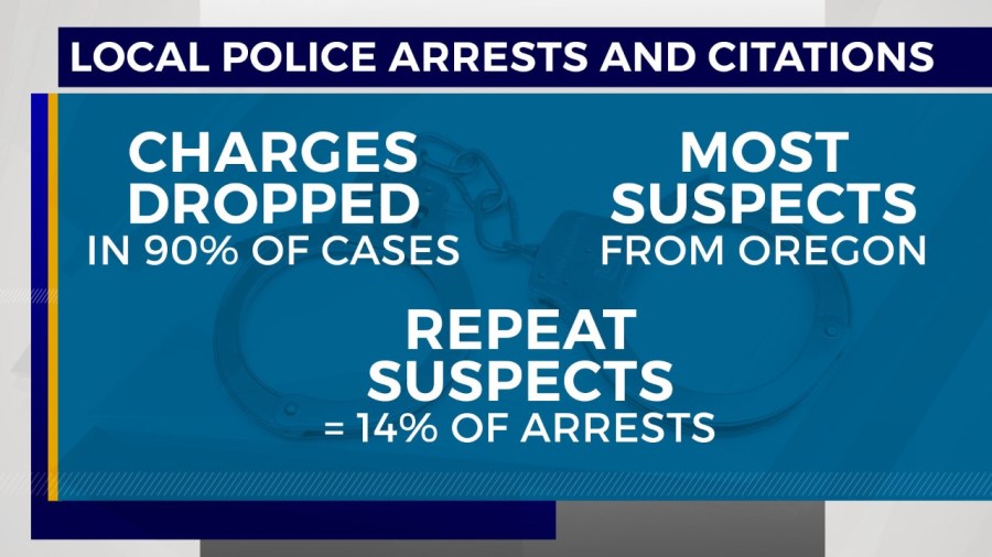 Repeat suspects account for about 14% of arrests. White people make up around 78% and Black people account for about 10% of arrests, according to the DA’s office. For comparison, Portland’s demographics are around 70.5% white and 5.8% Black.