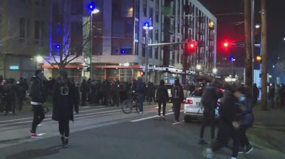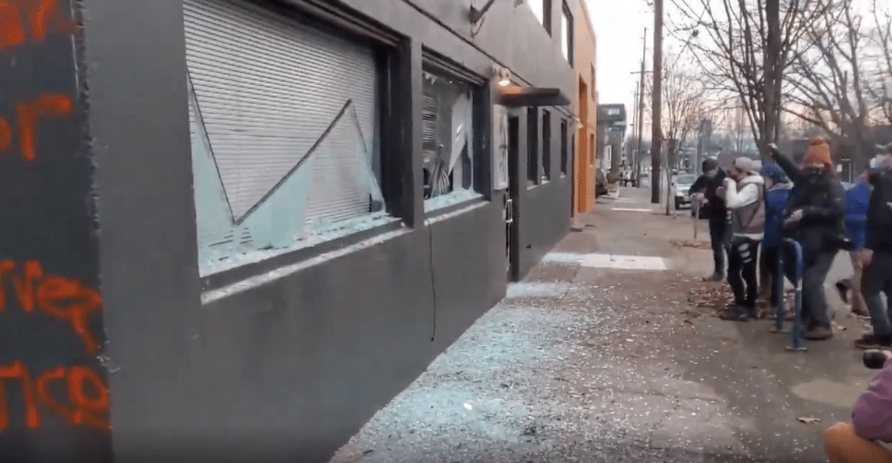 In the afternoon, 8 people were arrested after a group smashed windows and tagged the Democratic Headquarters in Northeast Portland. Democratic officials said they’re assessing the damage and figuring out the next steps on repairs.