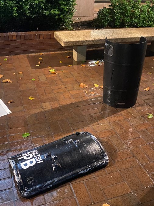 Members of the group broke windows and applied graffiti on businesses as they went, including a jewelry store, restaurants, coffee shop, bank, phone store and more. A restaurant in the 1400 block of SW Park Avenue had at least two bullets fired through the front windows, which lodged in the back wall.