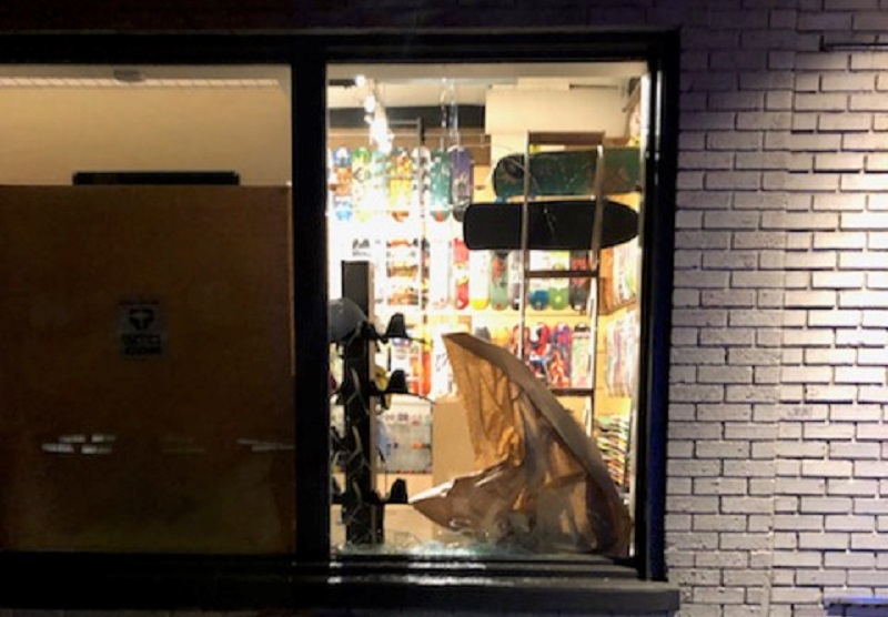 Scott Groshong, who was undercover and driving an unmarked van at the time, saw the Portland Skate and Snowboard at NW 9th and Davis shop being burglarized. He also saw one man take something from the store and run across the street.