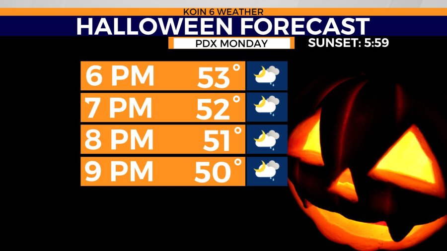 PORTLAND, Ore. (KOIN) — For the first time in four years, kids and parents, and Halloween party goers will be dealing with some spooky, soggy conditions for their evening festivities.