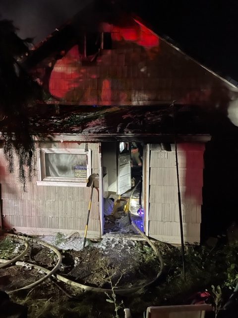 Power was shut off in the area, so crews could safely battle the 2-alarm fire amid downed powerlines in the home’s driveway. CF&R said the fire was put out by 9:10 p.m.