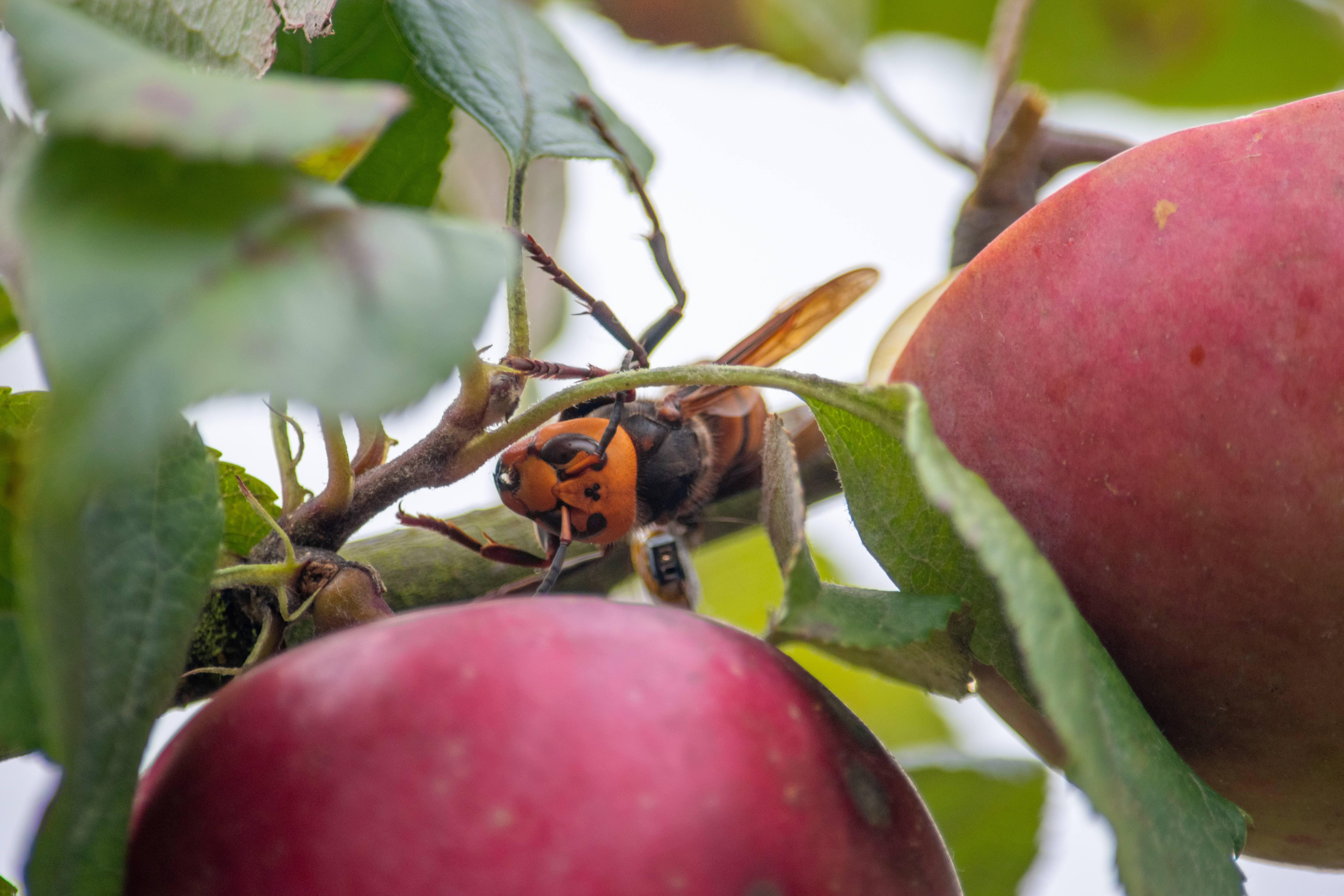 Another Blaine resident captured a live Asian giant hornet on October 5 and gave it to WSDA to help track it back to the nest. Researchers used dental floss to tie a radio tag to the insect, then placed it in an apple tree on October 7.