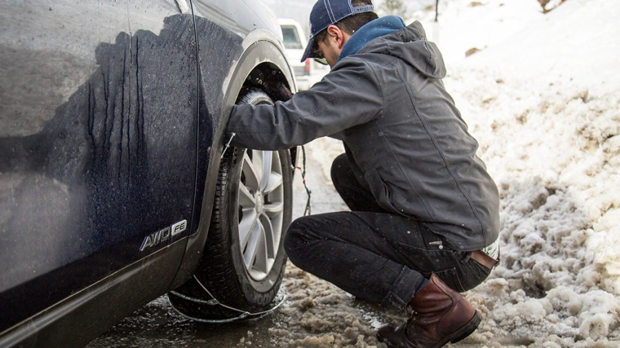 - Legal requirements: Putting chains on your tires may be required or illegal, depending on where you are. For example, it may be a requirement in winter if you’re headed into a national park. Some states prohibit chains unless there’s ice on the ground, because they can damage the roads’ asphalt. In other states, you must use snow chains during bad weather, regardless of vehicle type. You can even get a hefty fine for not adhering to the rules. If you’re driving somewhere unfamiliar, it’s always best to check the local requirements before your trip.