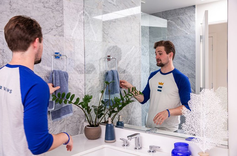 You can always use a second mirror for checking the back of your hairstyle, among other things. If you have enough space in your bathroom, you may consider investing in a small vanity mirror. Just under 7 inches in diameter, this mirror offers both one and five times magnification. It also has a non-slip base to keep it steady.