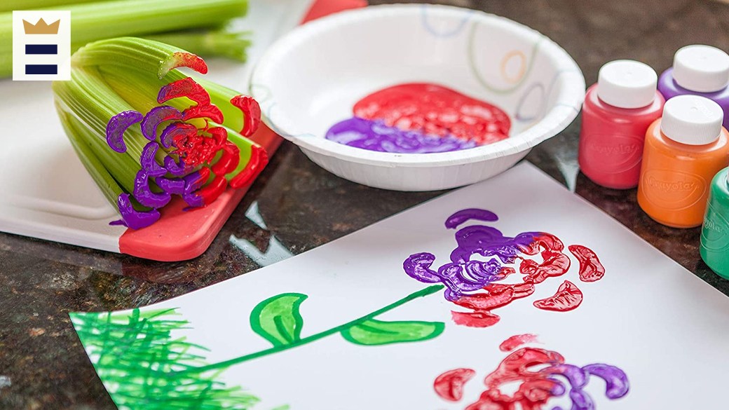 This 12-count paint set is a great starter set for younger kids but also paints smoothly for older ones. It comes with six classic colors and six glitter paint colors. All paint is non-toxic and incredibly easy to clean even if someone makes a major mess.