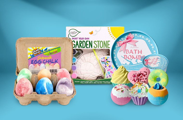 In this article: Creative Roots Paint Your Own Bunny Garden Stone, Regal Games Sidewalk Egg Chalk and Aofmee Bath Bombs Gift Set.