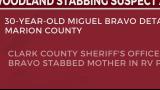The man accused of stabbing his mother in her home near Woodland, Washington, was taken into custody Thursday evening, the Clark County Sheriff’s Office said.