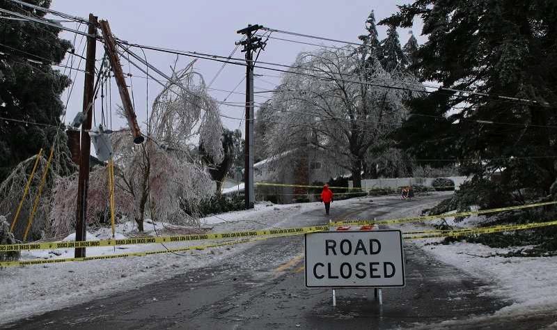 The winter snow and ice storm felled trees that knocked out 5000 power lines in Oregon, February 16, 2021 (KOIN)