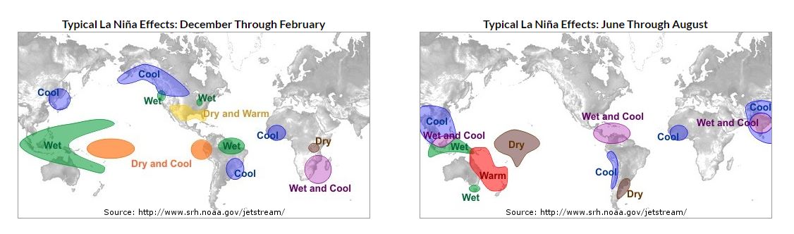 Interestingly, those thoughts are sometimes associated with those words at the start of this lesson. El Niño and La Niña are simply the names for warm and cold phases that occur in the east-central Equatorial Pacific waters. El Niño is associated with warming and La Niña is associated with cooling. You may know that the word in El Niño means “the little boy” and the word La Niña means “the little girl” in Spanish. If not, you have just learned two new words.