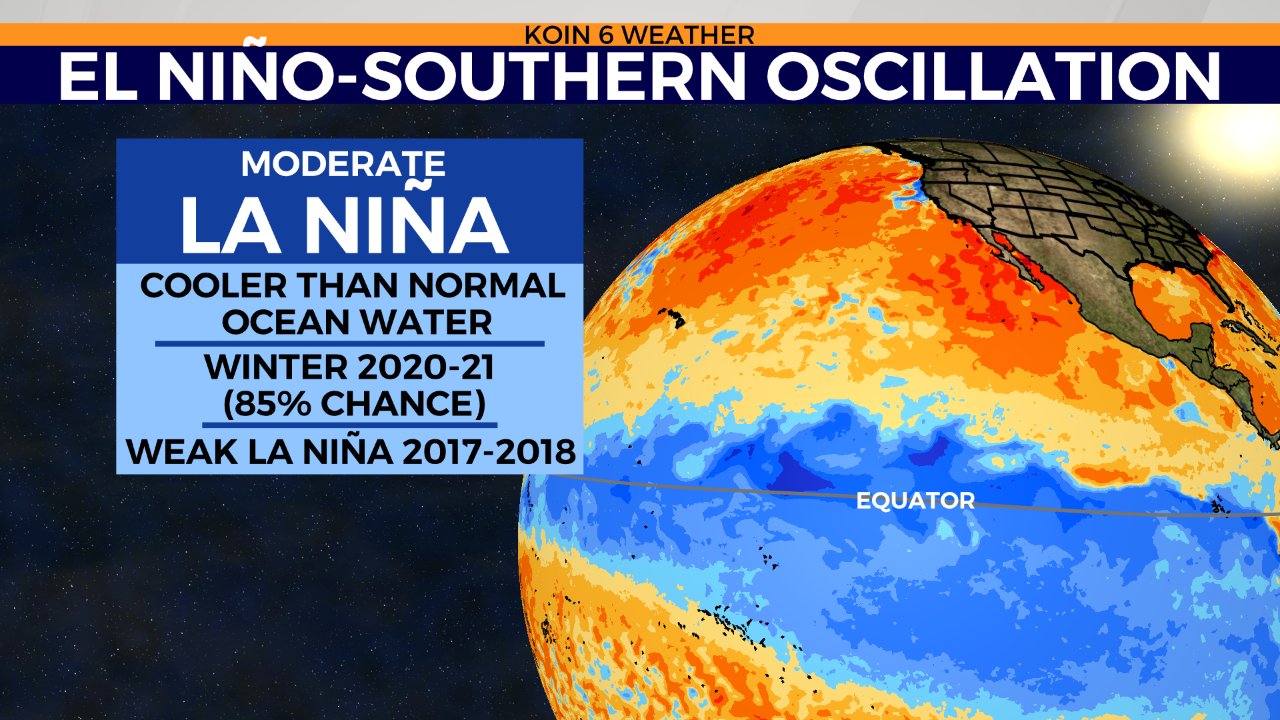 The first spot to look for winter weather cues is over the Pacific Ocean. Researchers have continued to track sea-surface temperatures along the tropical equator since the 1950s. The shifting body of warmer or colder than normal water is called the El Niño Southern Oscillation (ENSO). It can play a major role on influencing our winter weather in the Northern Hemisphere. For more in depth details on ENSO, click here.