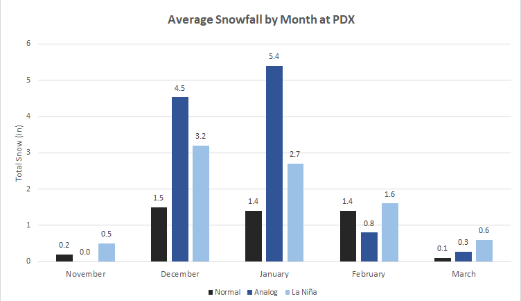 La Niña snowfall odds also favor (at PDX):
