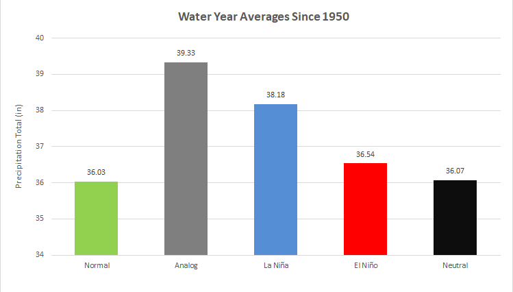 Stacking my set of analog years with La Niña winters in general and the climate norms show some interesting results.
