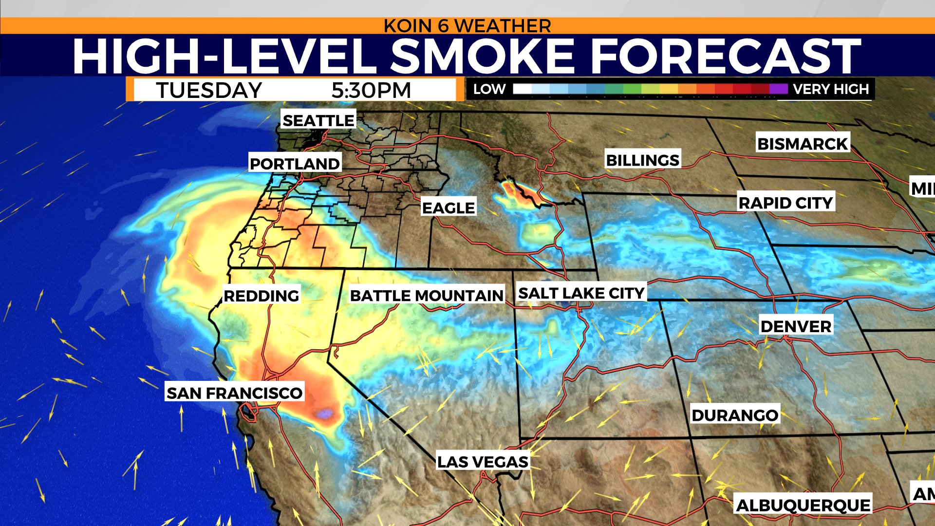 Lastly, there is a chance that we have high-level wildfire smoke moving in from the California wildfires Tuesday afternoon. This may alter the temperatures slightly, but it shouldn’t be significant. The smoke will be thickest to the south. This smoke may hang around through Wednesday as well.