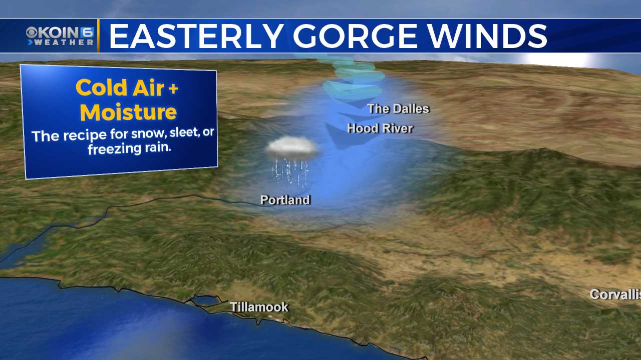 East winds and icing potential is the meteorologist’s cross to bear – always a tricky part of winter forecasting in Oregon and Washington. Cold wind paired with incoming moisture is a recipe for a snow or icing event for the metro.