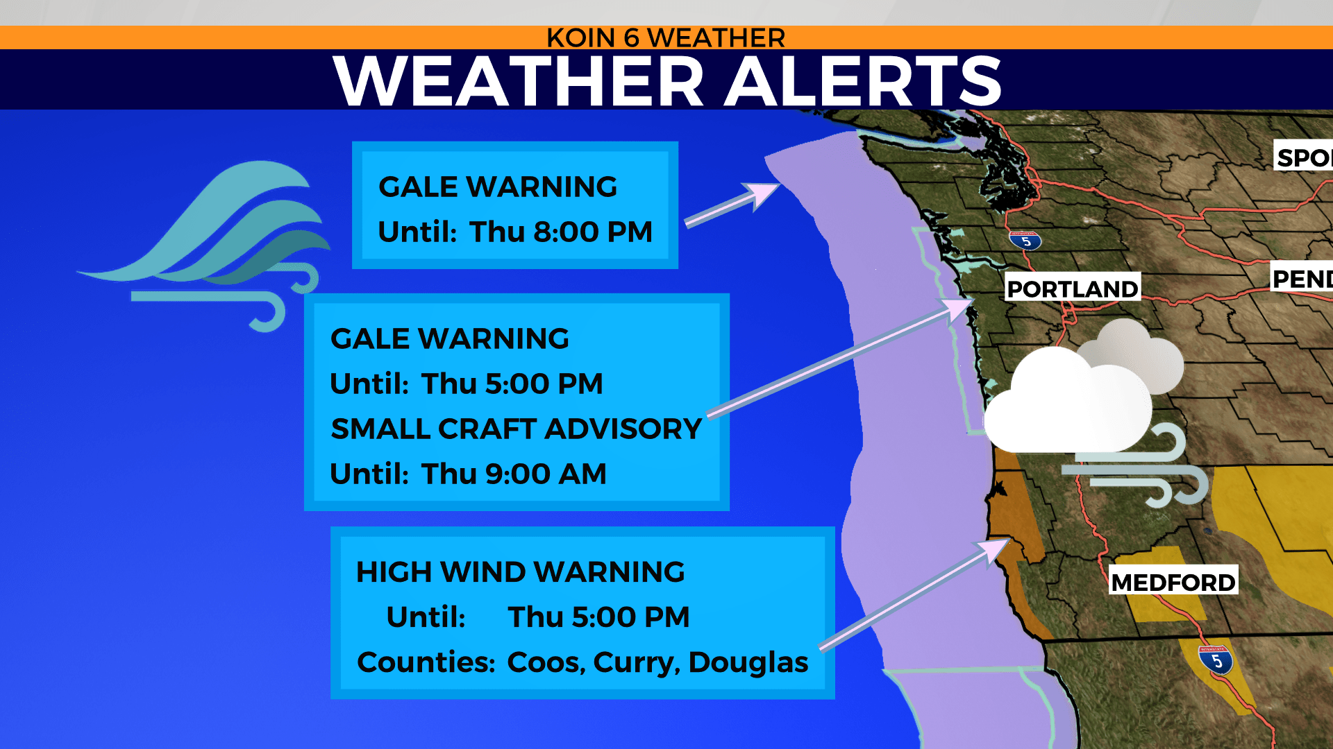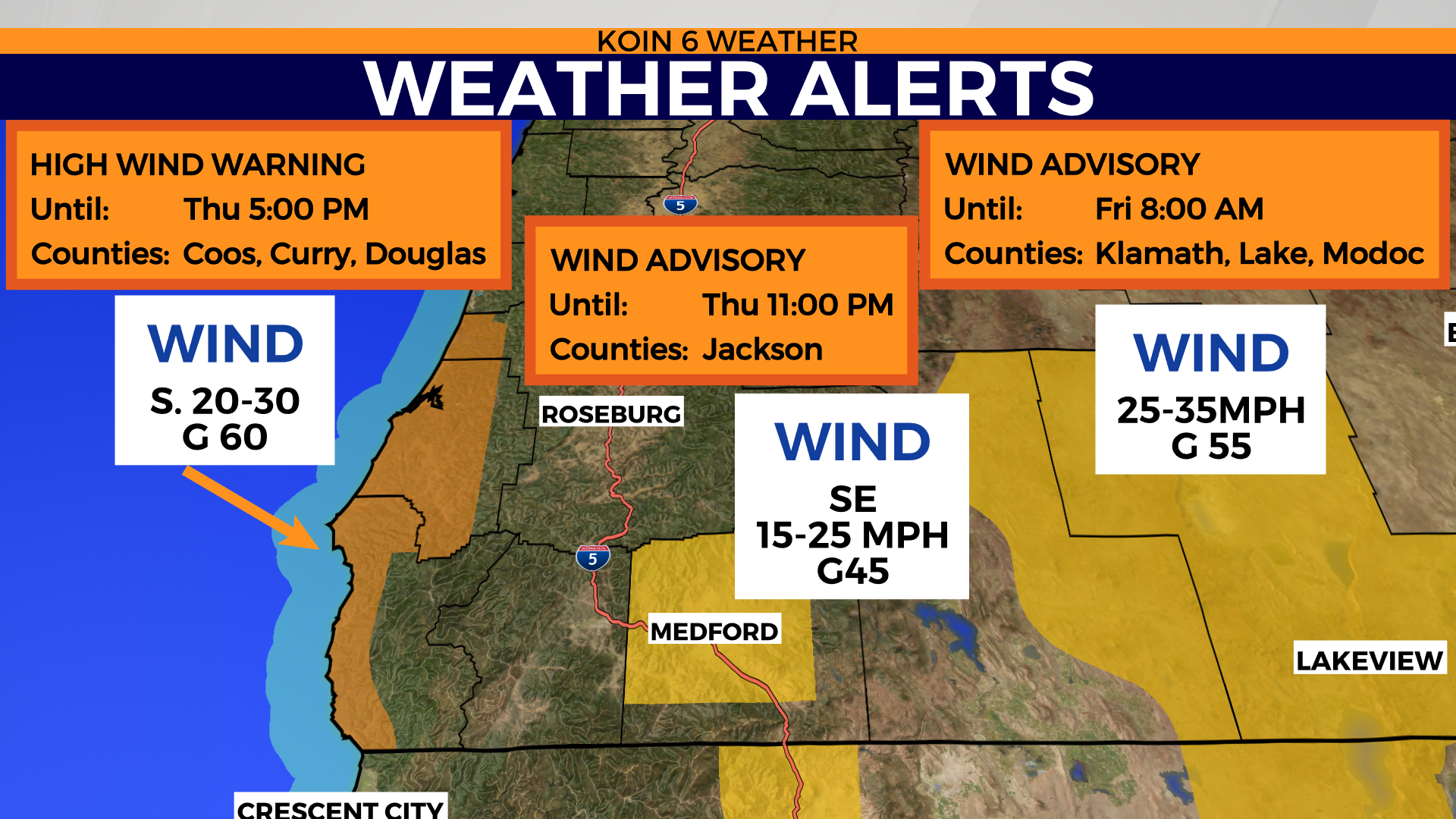 The strongest wind gusts along the south-central Oregon coast may start as early as 8 a.m. and continue through the afternoon. The strongest gusts up to 60 mph should remain south of Florence.