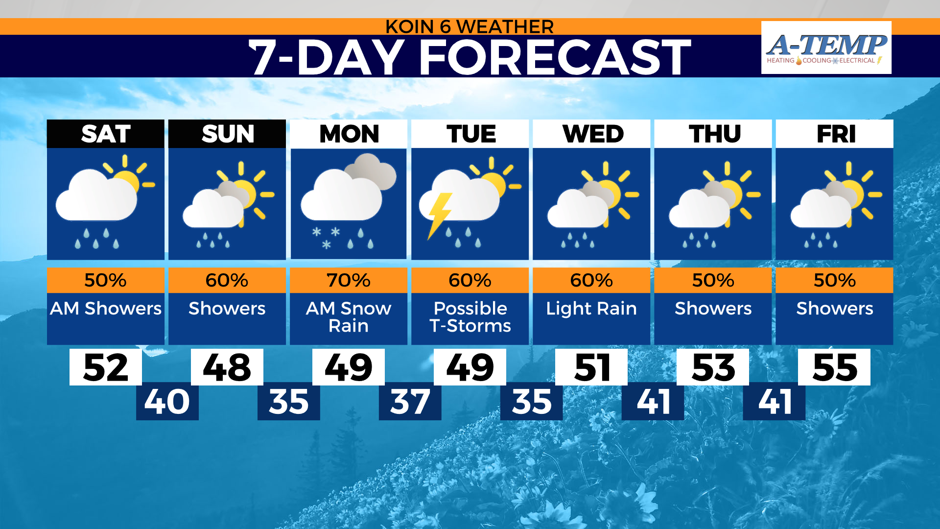 Just like 1985’s Back To The Future starring Michael J. Fox, we too are experiencing a bit of time travel in seasons. Sure, it’s early April but the weather this weekend will more closely mimic February. Daytime highs will range from 49 to 52. Low temps will vary from 36 to 40.