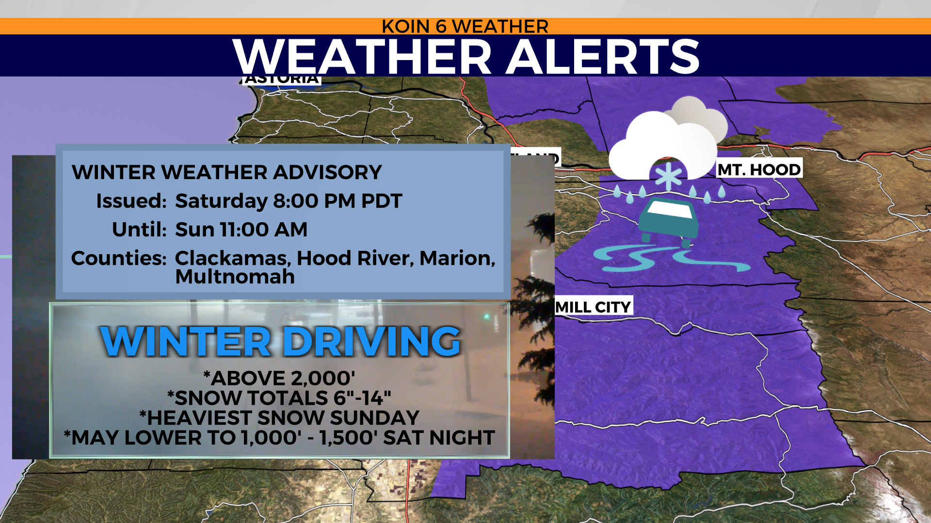 * WHAT…Snow expected above 2000 feet. Total snow accumulations of 6 to 14 inches.