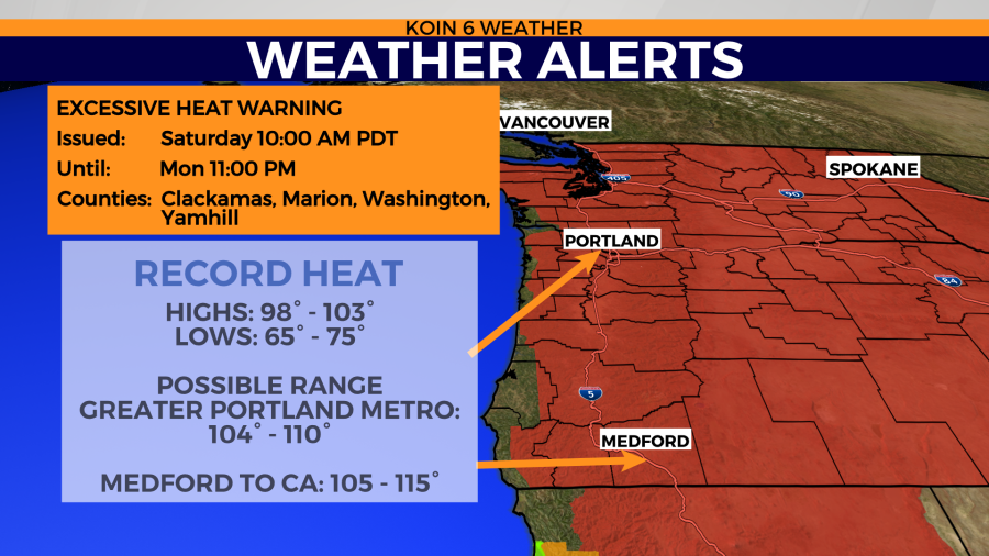 Forecast models are pointing to a series of extremely hot record-breaking days ranging from 103 to 113 over the weekend and into Monday for the Pacific Northwest. An excessive heat warning is in effect for the greater Portland metro area, as is most of Oregon and Washington, Saturday through Monday night.