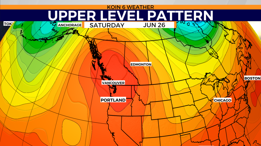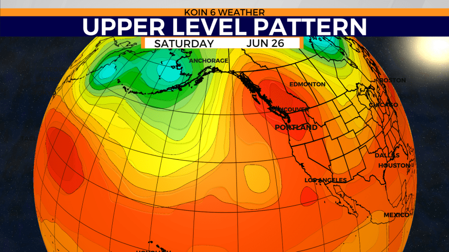 PORTLAND, Ore. (KOIN) — The heat dome is not a stadium, not a sauna, not a fad diet. It cannot be accessed by the Cloud, Uber, or purchased with Bitcoin. It’s a term used to describe unusually strong high pressure, and right now this invisible bubble is getting mighty strong over the Northeast Pacific. As it strengthens, so does the heat.