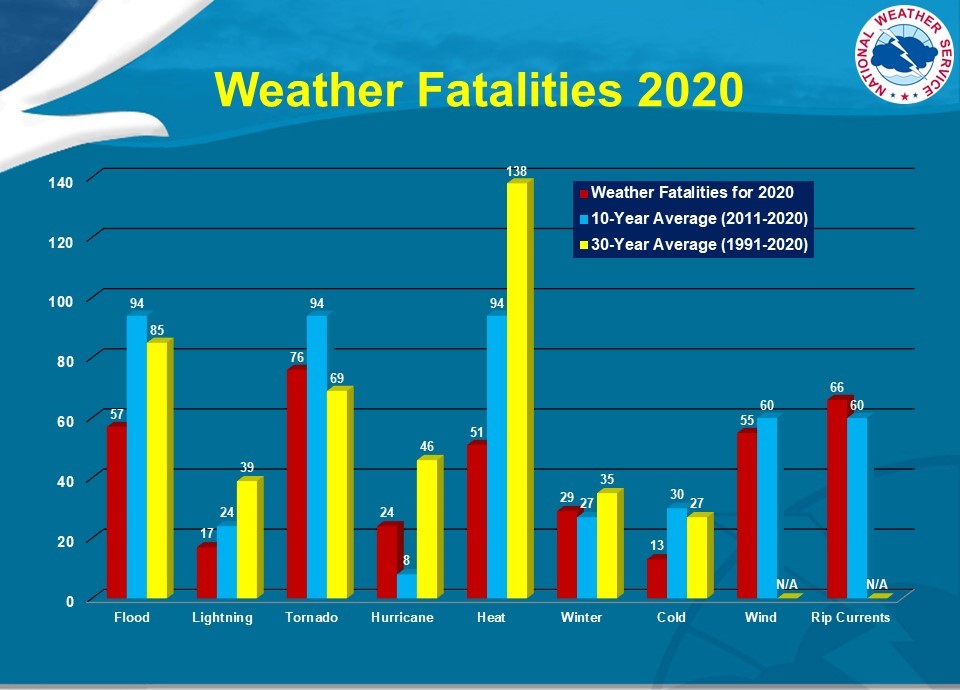Heat takes the lead as the deadliest weather-related event in the United States.
