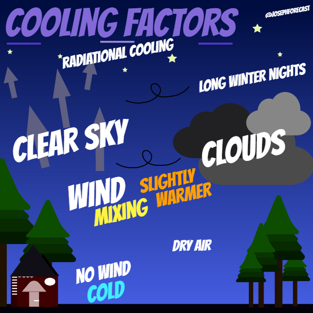 Below, gives an idea of the general cooling factors that influence our overnight and morning temperatures.