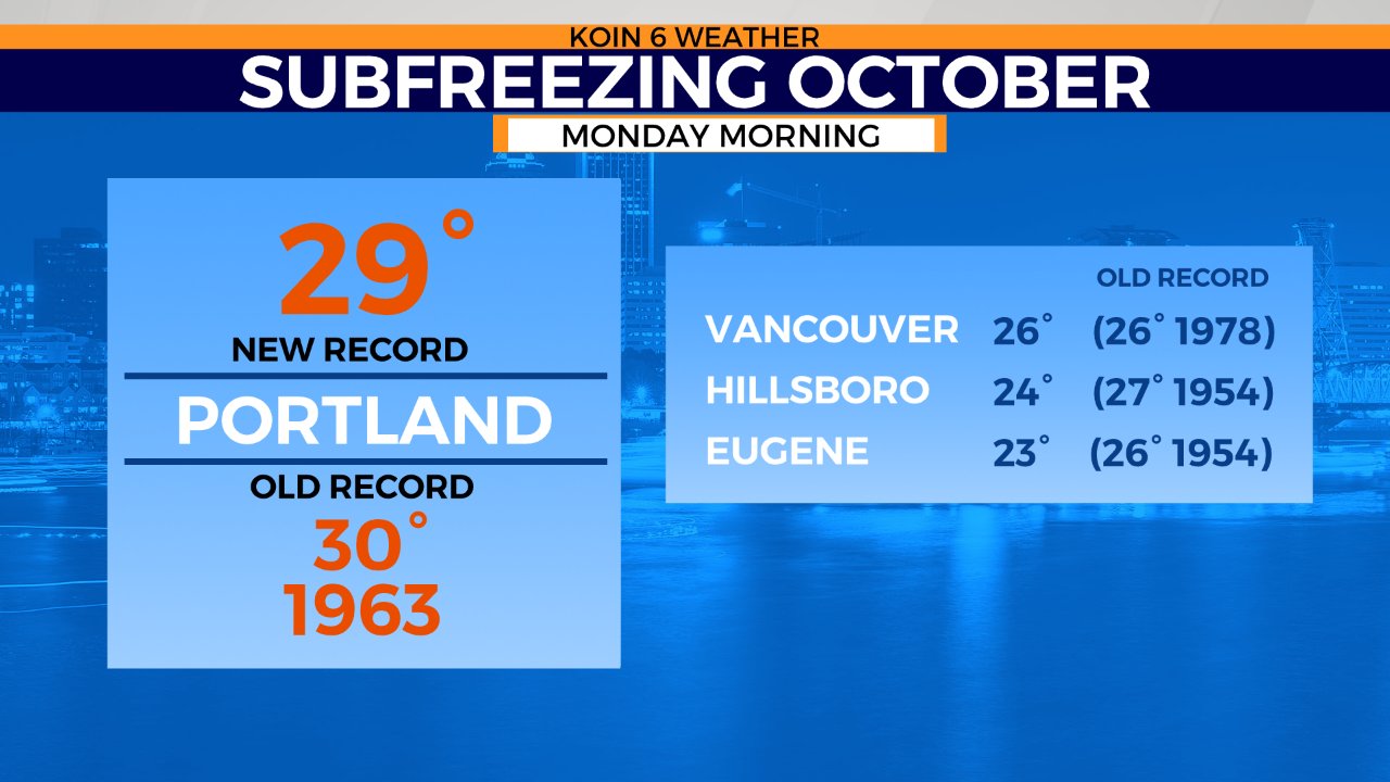 When you’re forecasting, these are things that you’re taking into consideration. The weather models may say something like 40 degrees, but then you have to understand, all the other conditions that are in play for the night. Portland, Oregon, broke the record of 30 degrees back from 1963 on October 26. It was the combination of all those things above and uncommon winter air moving in early from Canada on this day. If for some reason the clouds moved in or the wind stayed strong, we likely would have been cold, but not record breaking cold.