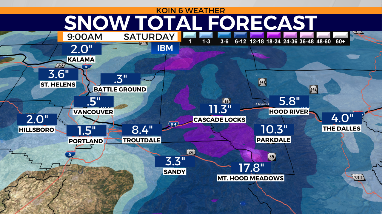 There’s a chance to see another shot of freezing rain/snow Saturday morning and again in the afternoon. Only slightly warmer temperatures arrive Sunday with a chance to see more freezing rain/snow/rain. Some of the snow you see today across SW Washington and the Columbia River Gorge will likely stick around for days.