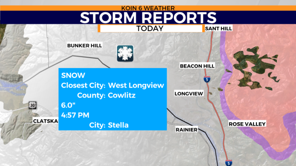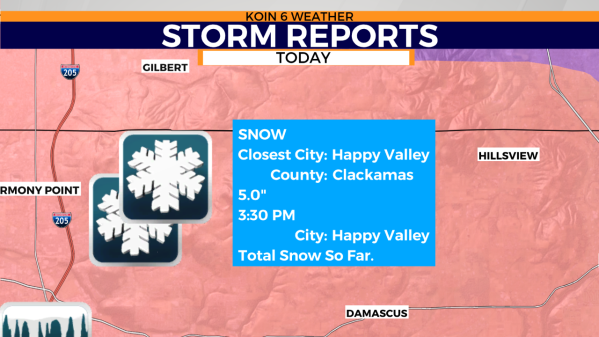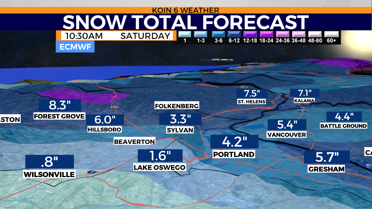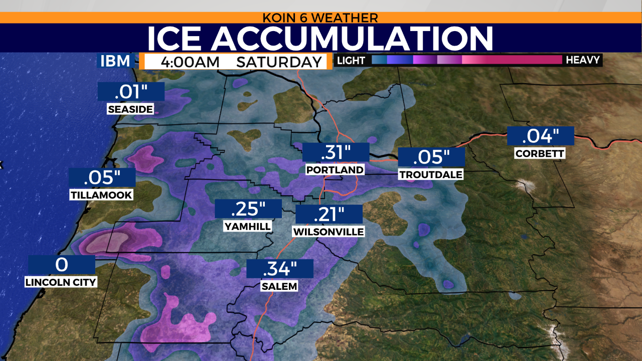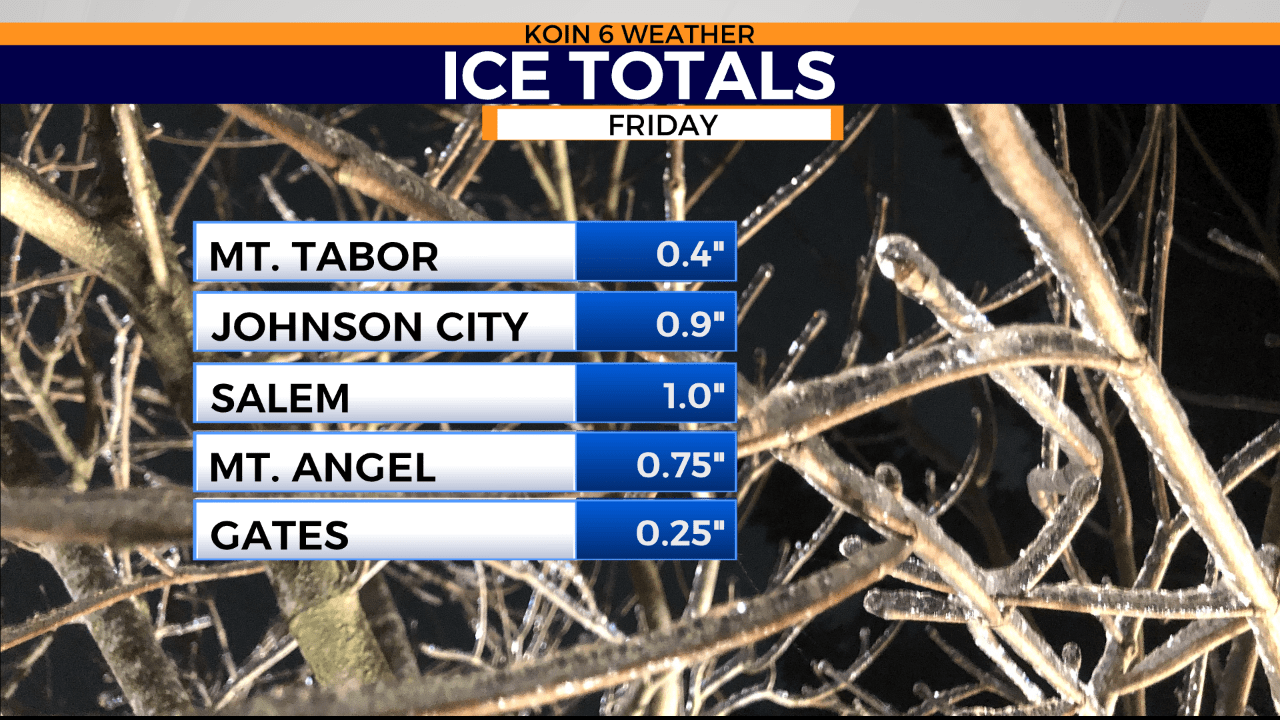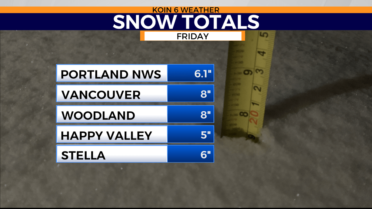 Around the greater Portland metro areas, ice accumulations from freezing rain ranged from 1/10 of an inch to 1/4 of an inch. At the Portland NWS office, they measured 6.1 inches of snow for Friday.